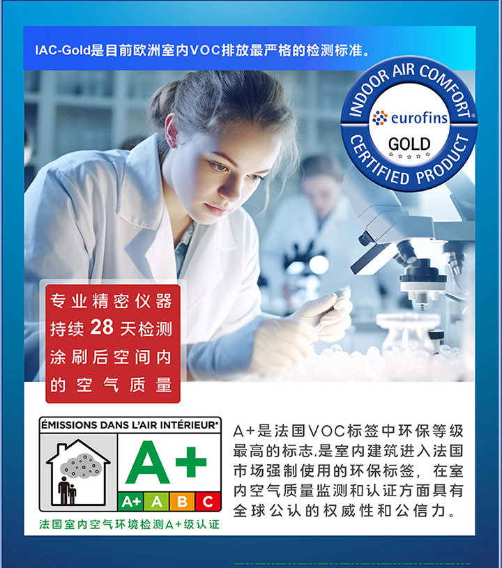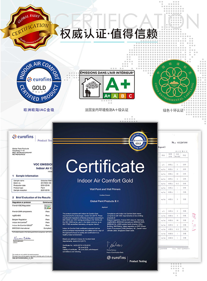 源自荷蘭,秉承歐洲綠色理念,通過(guò)嚴(yán)苛的歐陸IAC-GOLD金級(jí)認(rèn)證及法國(guó)A+級(jí)認(rèn)證,確保產(chǎn)品安全可靠,裝修無(wú)憂(yōu)。