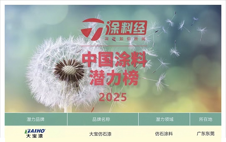 2月12日,備受行業(yè)矚目的“2025中國涂料品牌潛力榜”正式揭曉,大寶仿石漆憑借其卓越的產品品質及強勁的市場表現,成功入選該榜單,標志著大寶仿石漆在涂料市場的發(fā)展?jié)摿Λ@得了行業(yè)的高度認可。
