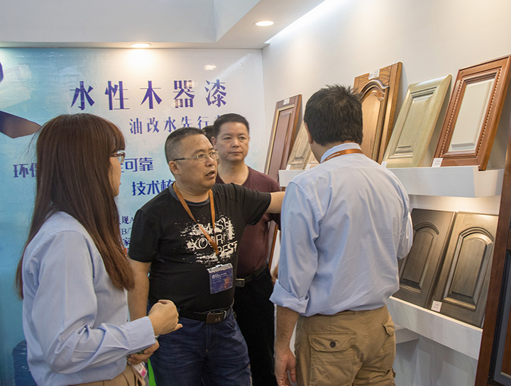 針對整個行業(yè)的環(huán)保轉(zhuǎn)型需求,大寶漆一直致力于推動環(huán)保涂裝。其中,大寶漆展示的水性著色劑具著色與防脹筋效果、簡化流程,無需使用素材處理劑、涂膜通透性優(yōu)異等,可極大的滿足家具廠復(fù)古簡約產(chǎn)品的涂裝需求。該產(chǎn)品的涂膜厚度達(dá)到納米級別,可與國際頂尖化工集團(tuán)PPG、阿克蘇諾貝爾等的產(chǎn)品比美。在展會上該產(chǎn)品一度成為觀展商關(guān)注咨詢的焦點(diǎn)。