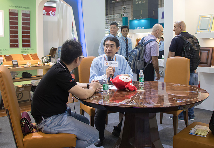 大寶漆堅持“專業(yè)、創(chuàng)新”,不斷推出新產(chǎn)品、新工藝和優(yōu)化整體涂裝解決方案,不僅贏得廣大家具客戶的認(rèn)可和信賴,還得到業(yè)內(nèi)媒體的關(guān)注。慧聰涂料網(wǎng)、南方衛(wèi)視《名優(yōu)博覽》等行業(yè)媒體記者紛紛趕來。東莞大寶化工直銷事業(yè)部張正賢總經(jīng)理、業(yè)務(wù)部周志鴻副總經(jīng)理在展會現(xiàn)場接受了采訪,為媒體記者深入解讀了大寶家具漆和 “油改水” 環(huán)保涂裝的發(fā)展趨勢。