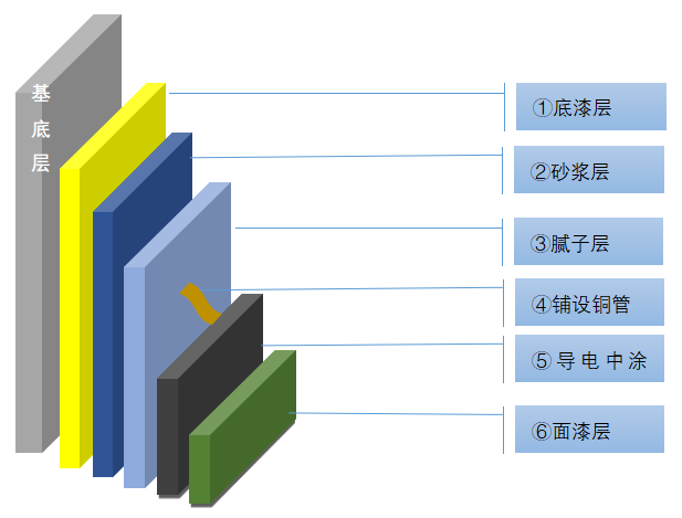 橫、縱向間隔4m(或按設計要求)鋪設銅箔(銅箔上用EPD-401A/B封閉一遍)