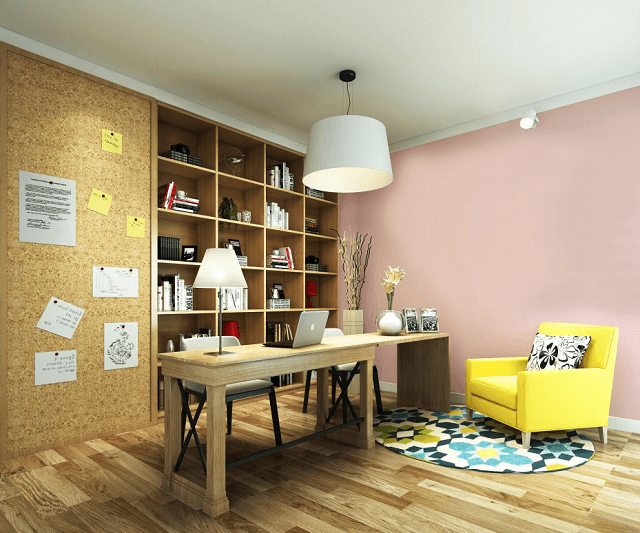 白色+粉色,重塑室內空間視覺焦點,在日常工作里經常伴隨雜亂事務和沒由來的壓力,因此工作空間需要更完美的配色,為了保持簡單,只選擇一種主色調,讓工作空間盡可能保持干凈,清晰。若使用大面積的粉色會顯得太少女風,所以天花用白色進行柔和過渡。北歐風格的粉有種柔柔的舒適感,同樣帶一定的灰度,卻還能做到深入人心。